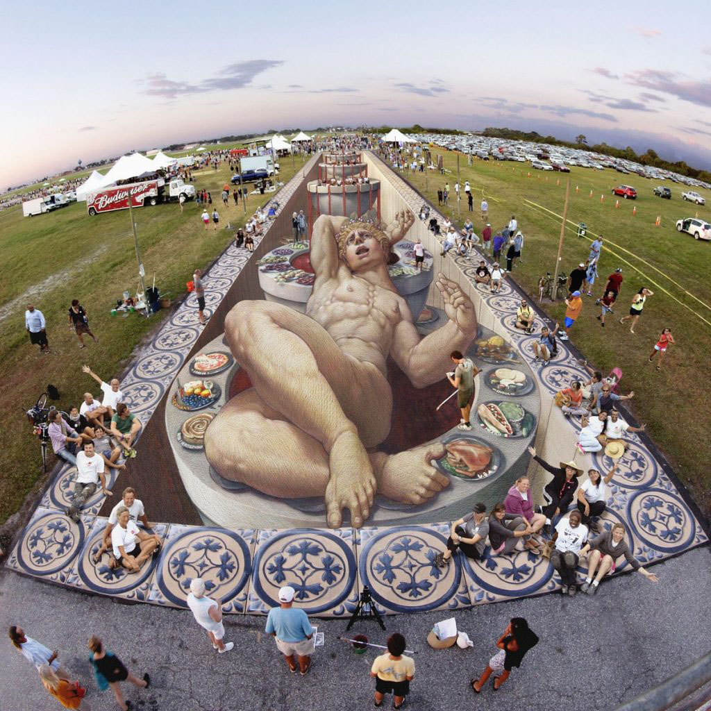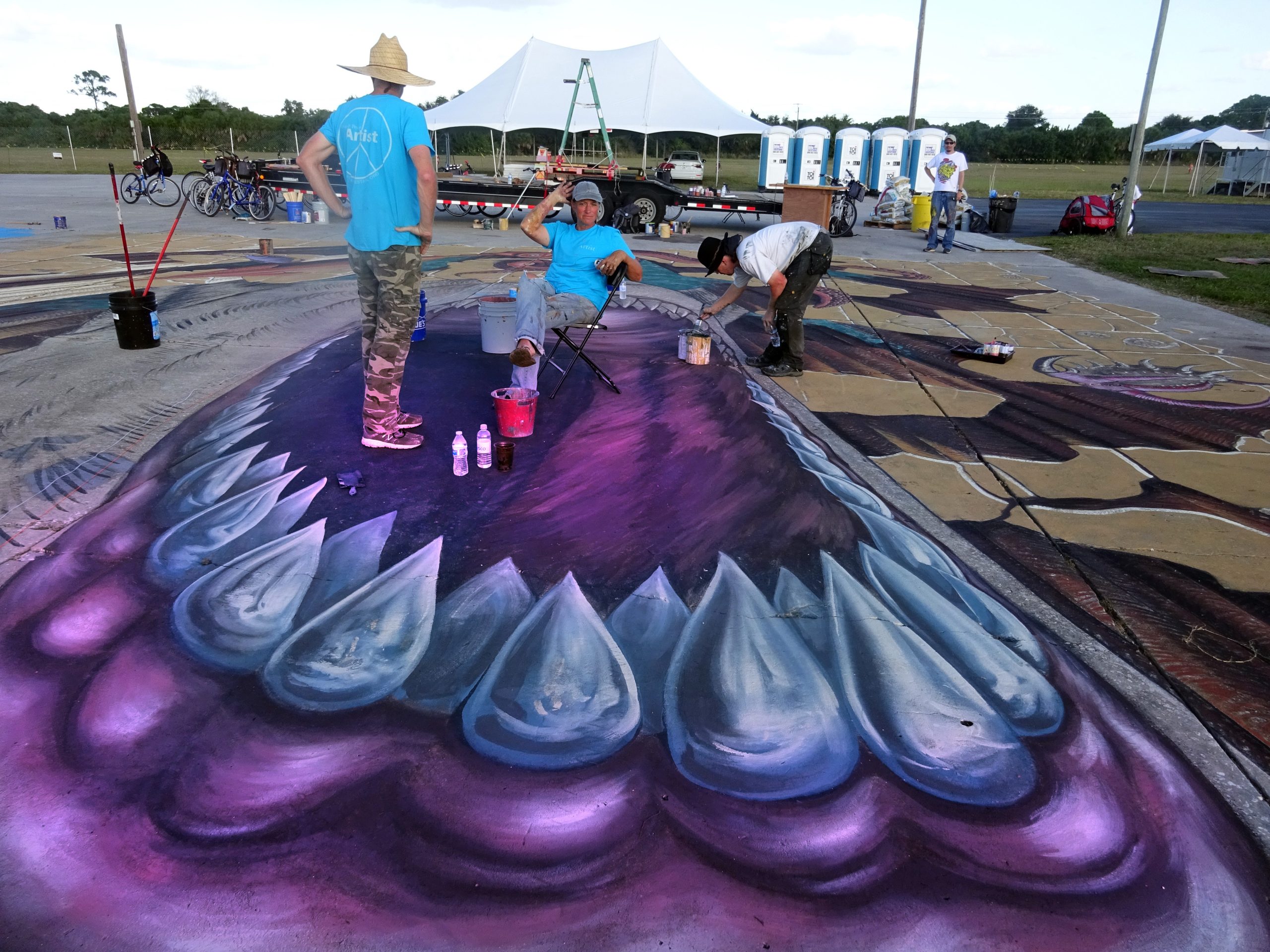 The current world record for anamorphic art measuring 16,900 square feet was awarded in Germany in 2012. It broke the 2007 world record of 8,073 square feet held in the Netherlands. All the artists have performed at the Sarasota Chalk Festival in past seasons and may even lend their hand in securing this world record for the U.S.A. The painting created in Venice is 22,747 square feet.