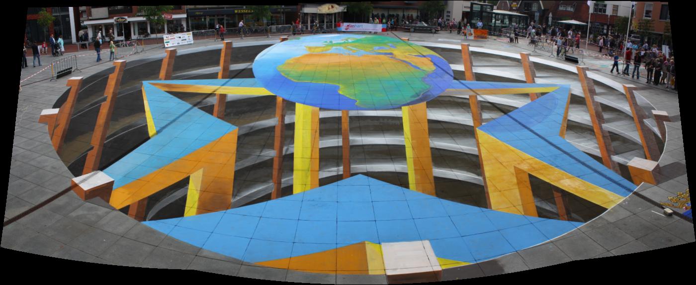 Pavement Artist Gregor Wosik from Germany, who currently holds the record title along with Lydia Hitzfield from Germany participated. Previous pavement artist record holders participated such as Marion Ruthardt from Germany and Remko VanShaik from Netherlands. Other renown pavement artists included Phillipenzo from Russia, Roberto Rodriquez from Mexico, Sharyn Namnath from California USA, Matthew May from the Netherlands, JM Navello from France, Tomo Saito from Japan, Carlos Hernandez from Mexico, David Bracanto from Sarasota USA, Alex Maxsiov from Ukrain, Frederike Wouters from Germany, Iloni Fries from Clearwater USA, and many more helped create the world record painting.