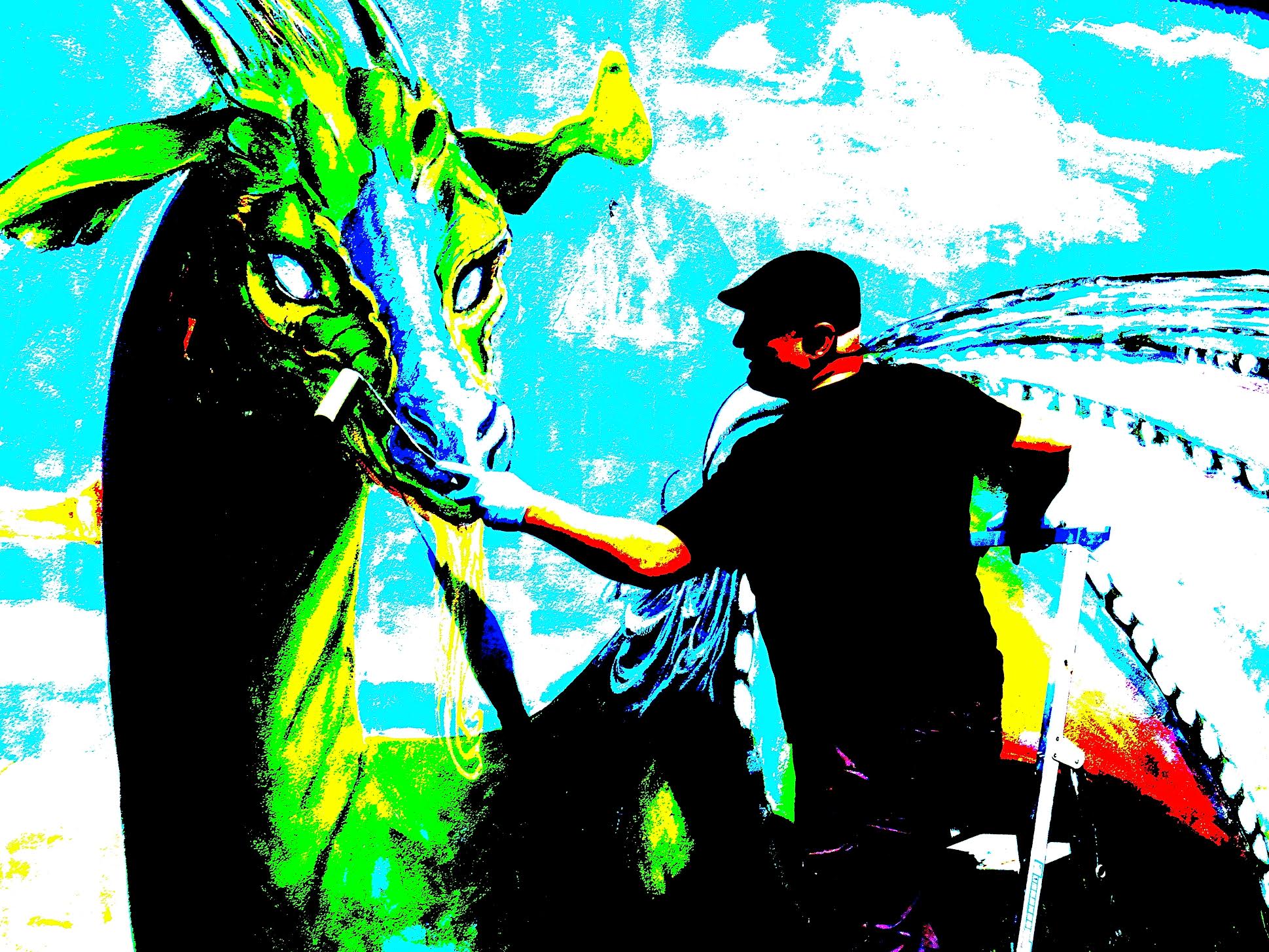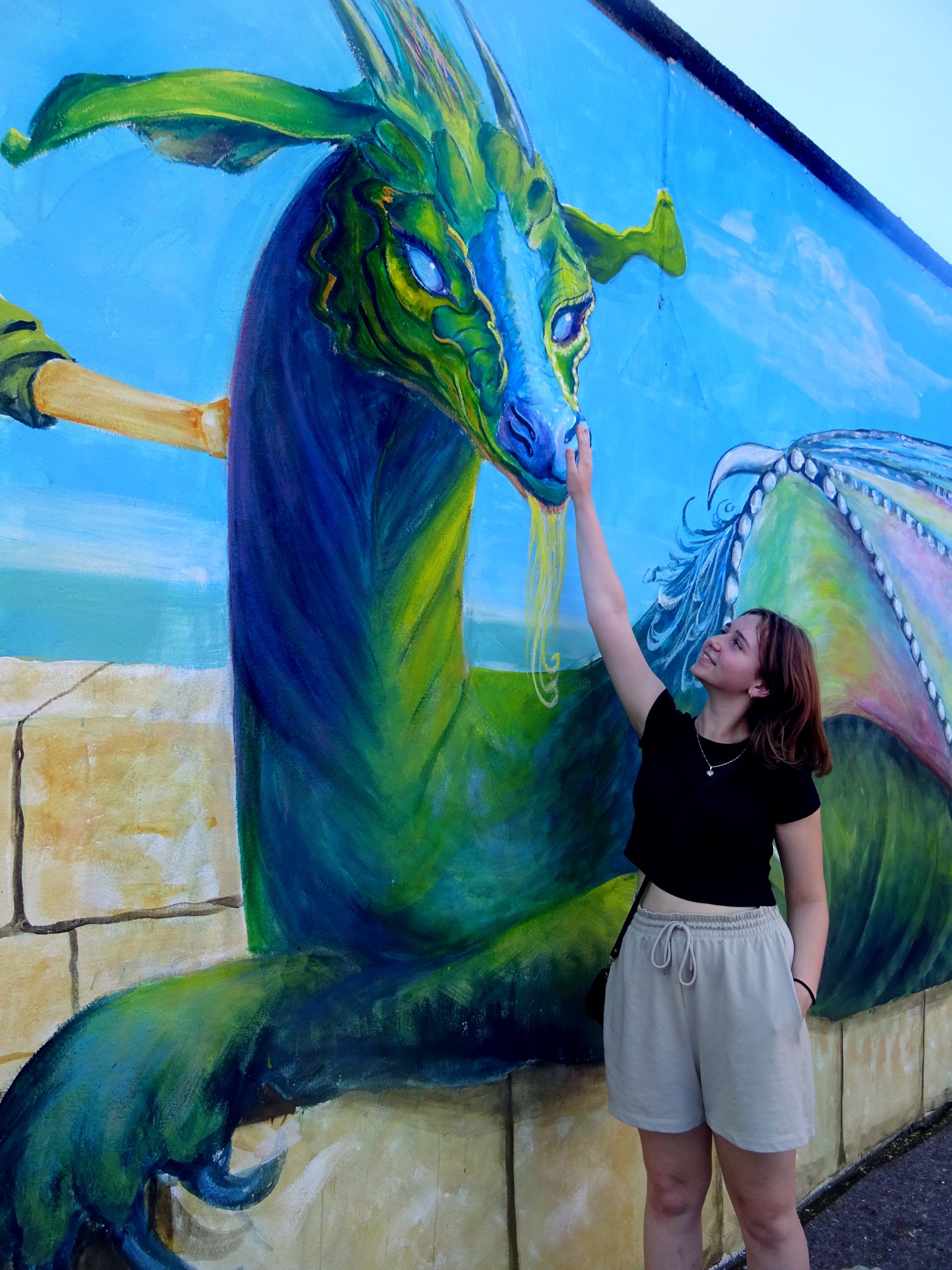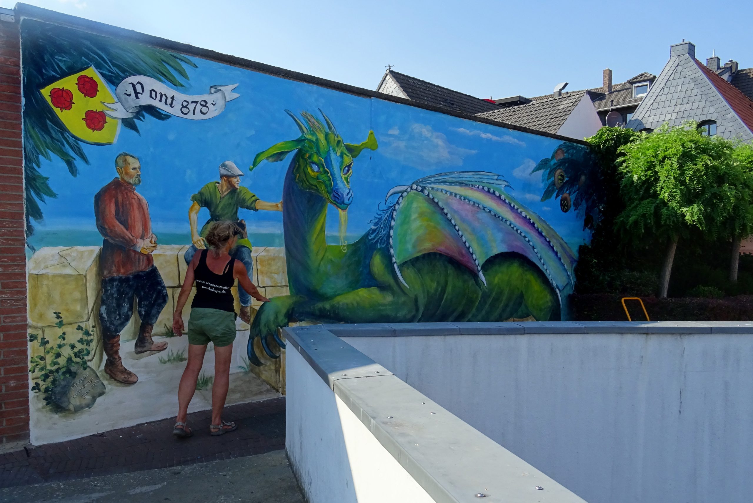 Von der Stadt Geldern bekam ich den Auftrag, einen Drachen zu malen. Drachen sind in Geldern all- gegenwärtig, denn die Legende besagt