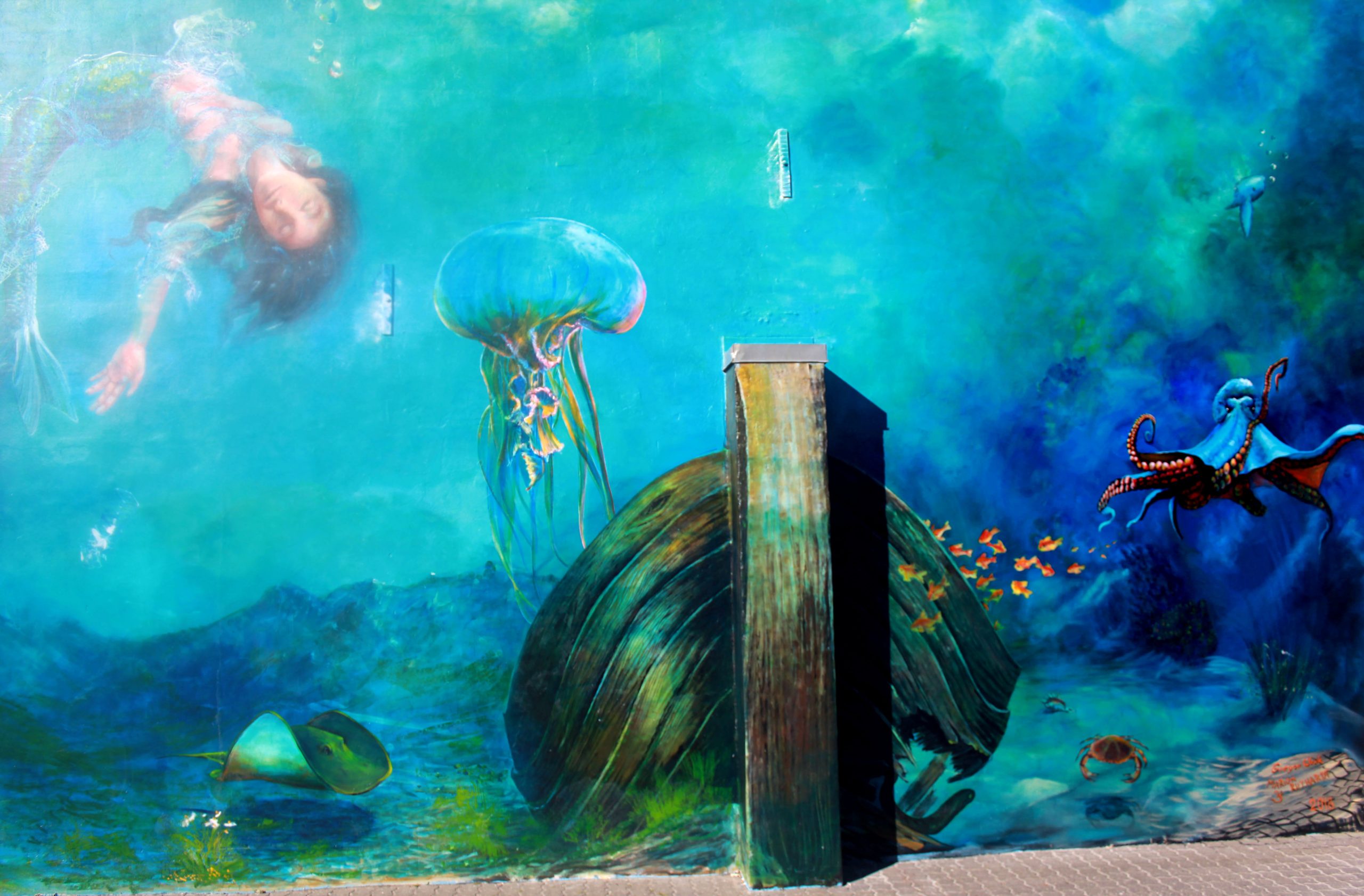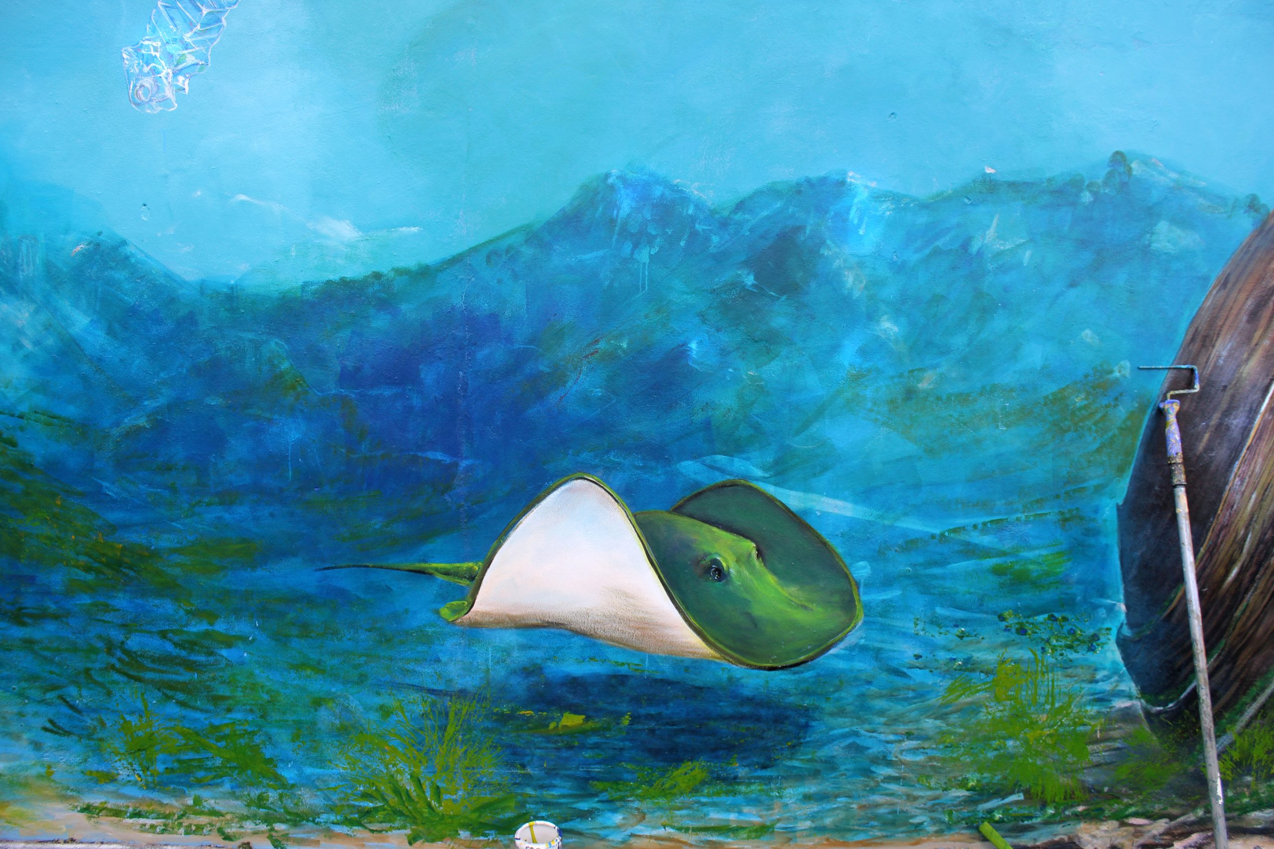 Gregor mußte natürlich noch mal Hand anlegen, und sorgfältig den Busen der Meerjungfrau ausmalen, obwohl schon vorher klar war, daß er durch Wasser verdeckt sein würde…