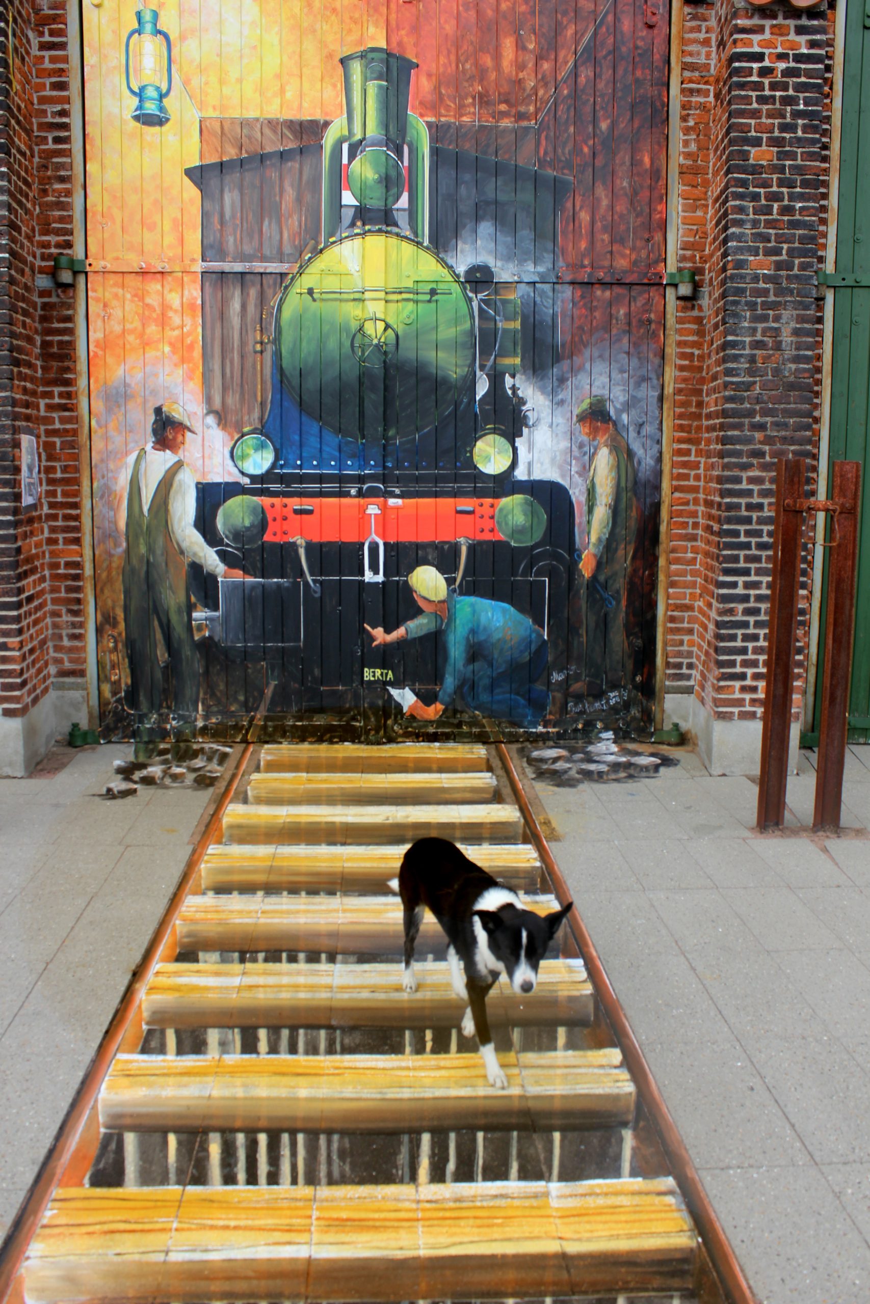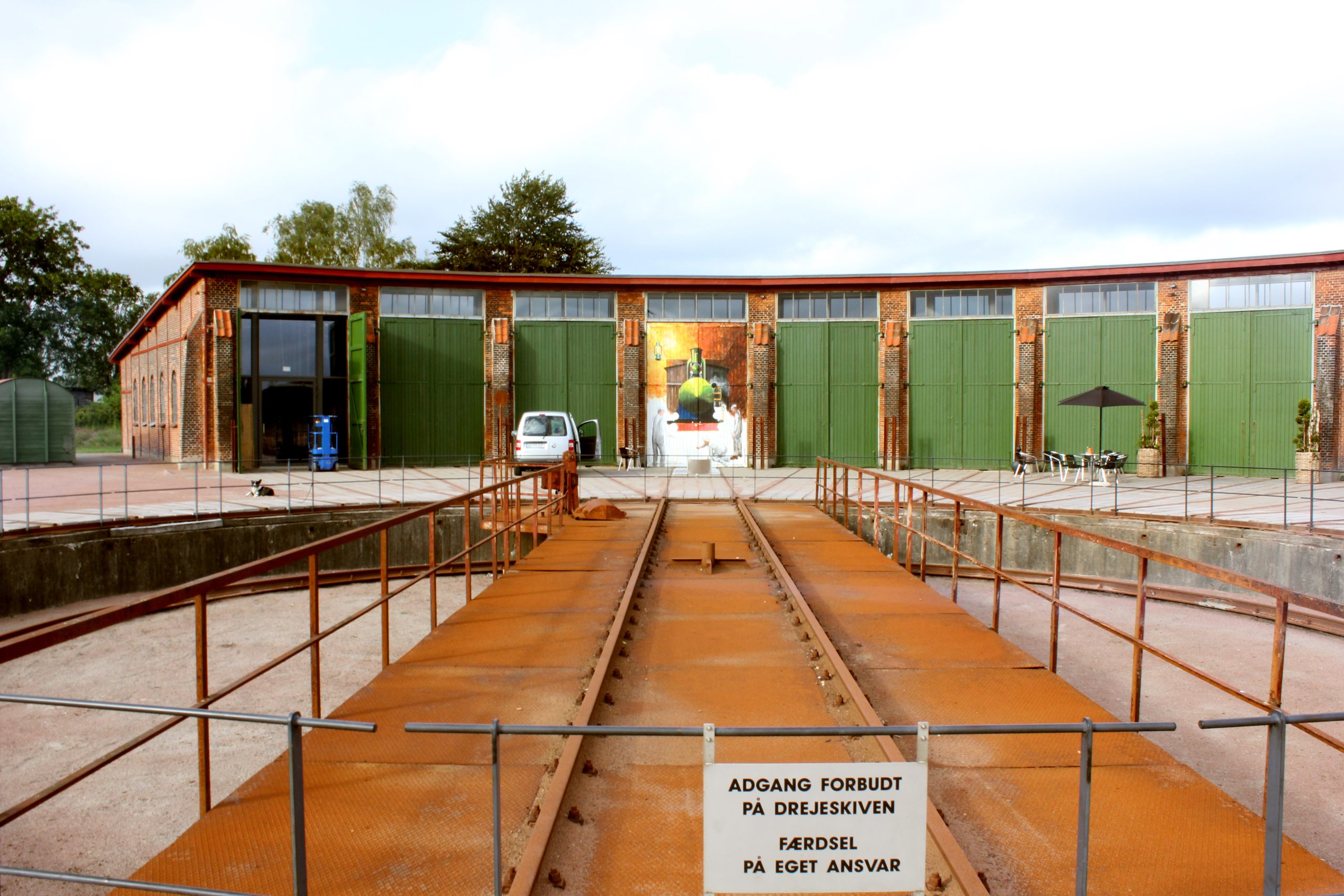 Dies endete 1970.. Seit einigen Jahren ist die Remise renoviert, und wird als Veranstaltungsort genutzt. Ich war sehr glücklich, daß ich die Gelegenheit erhielt, ein Garagentor zu bemalen. Klassischerweise mit der Front einer jütländischen Dampflok.