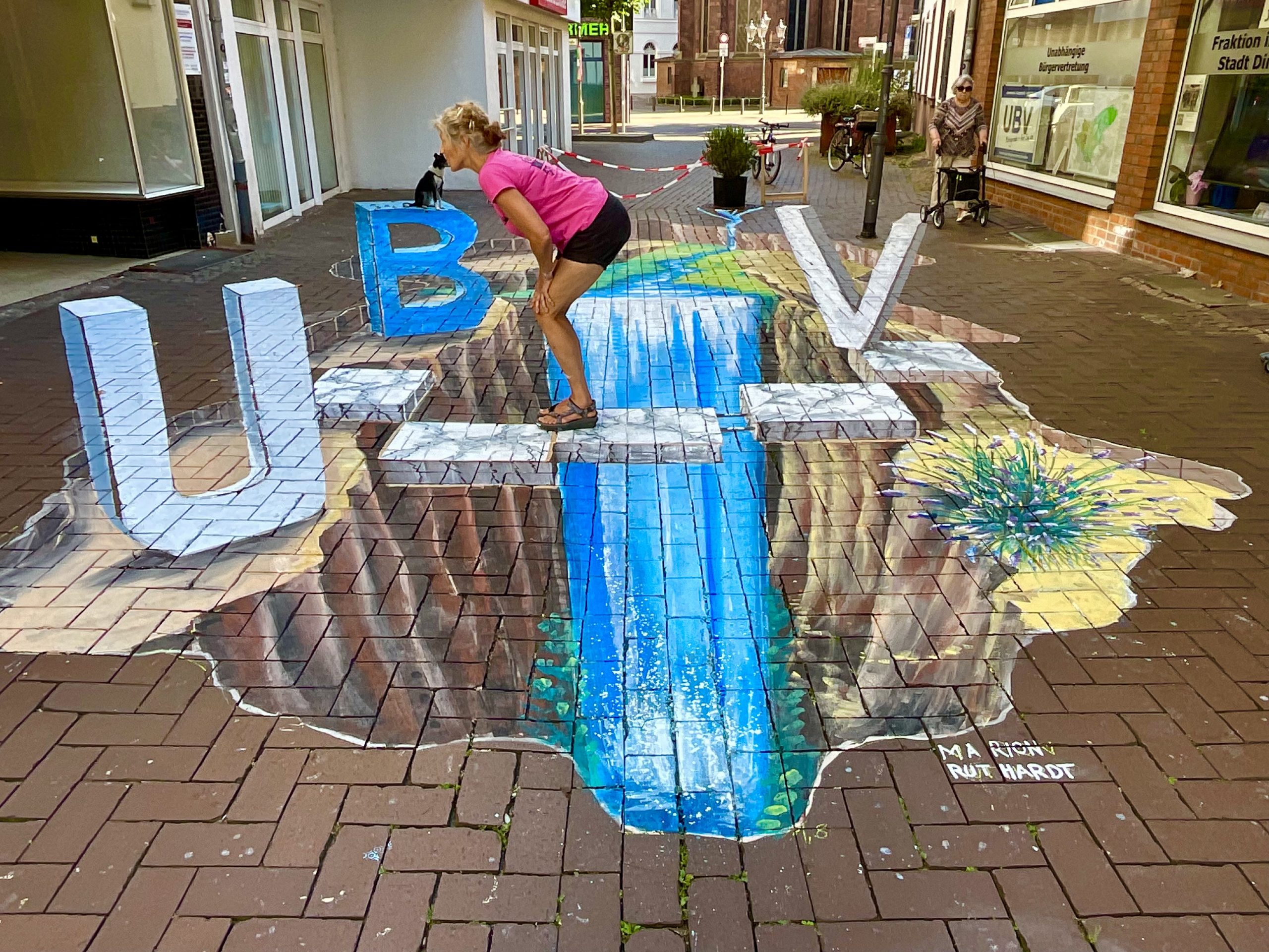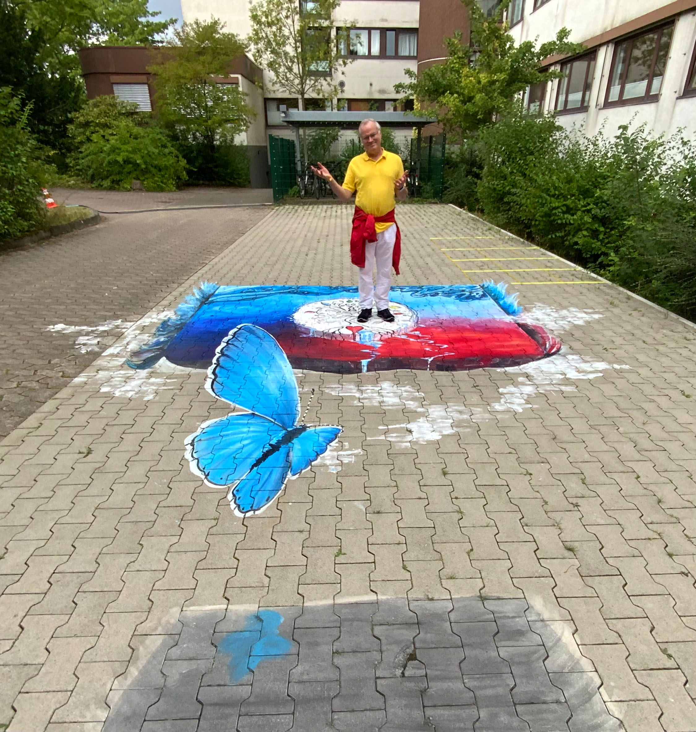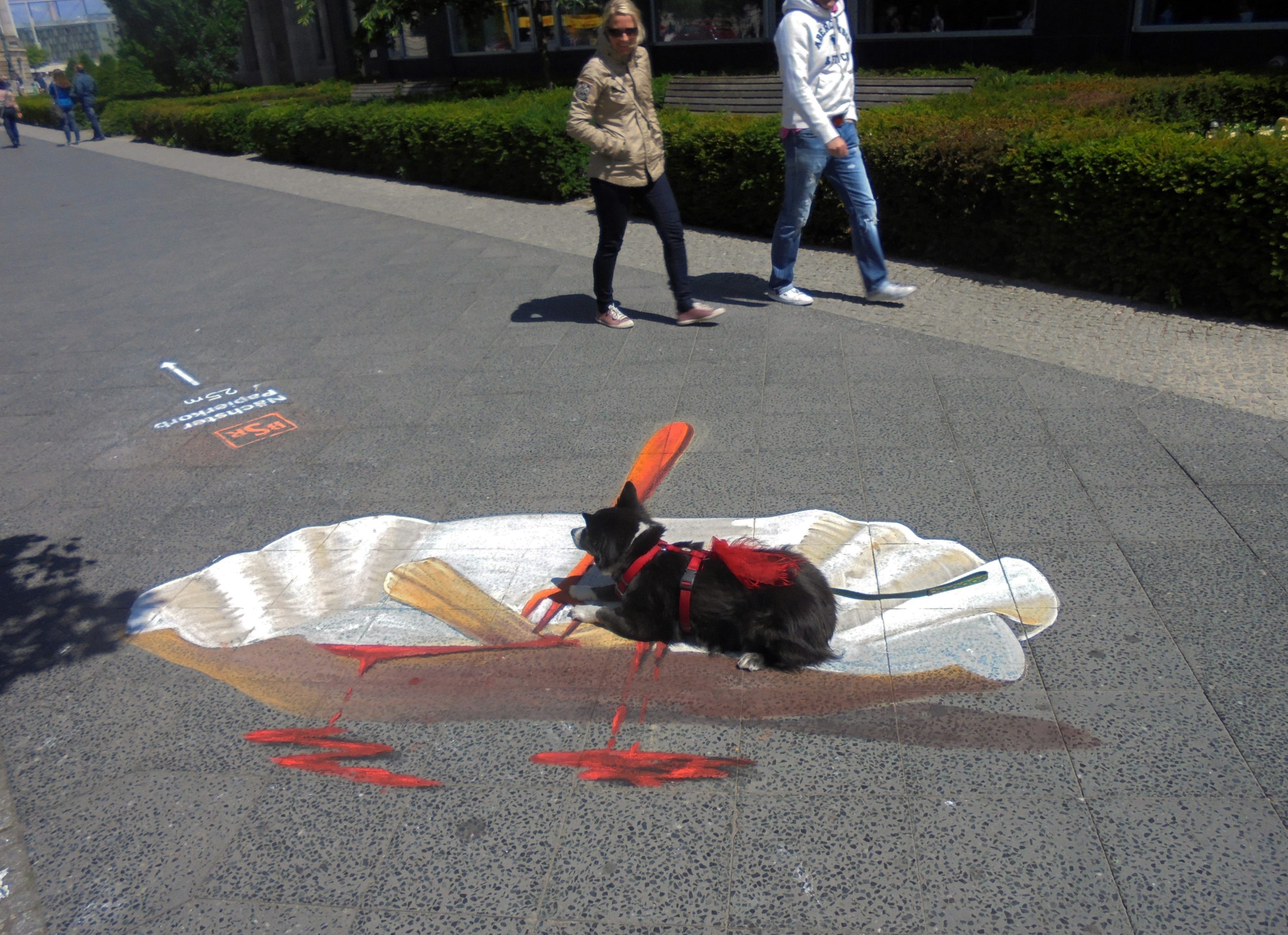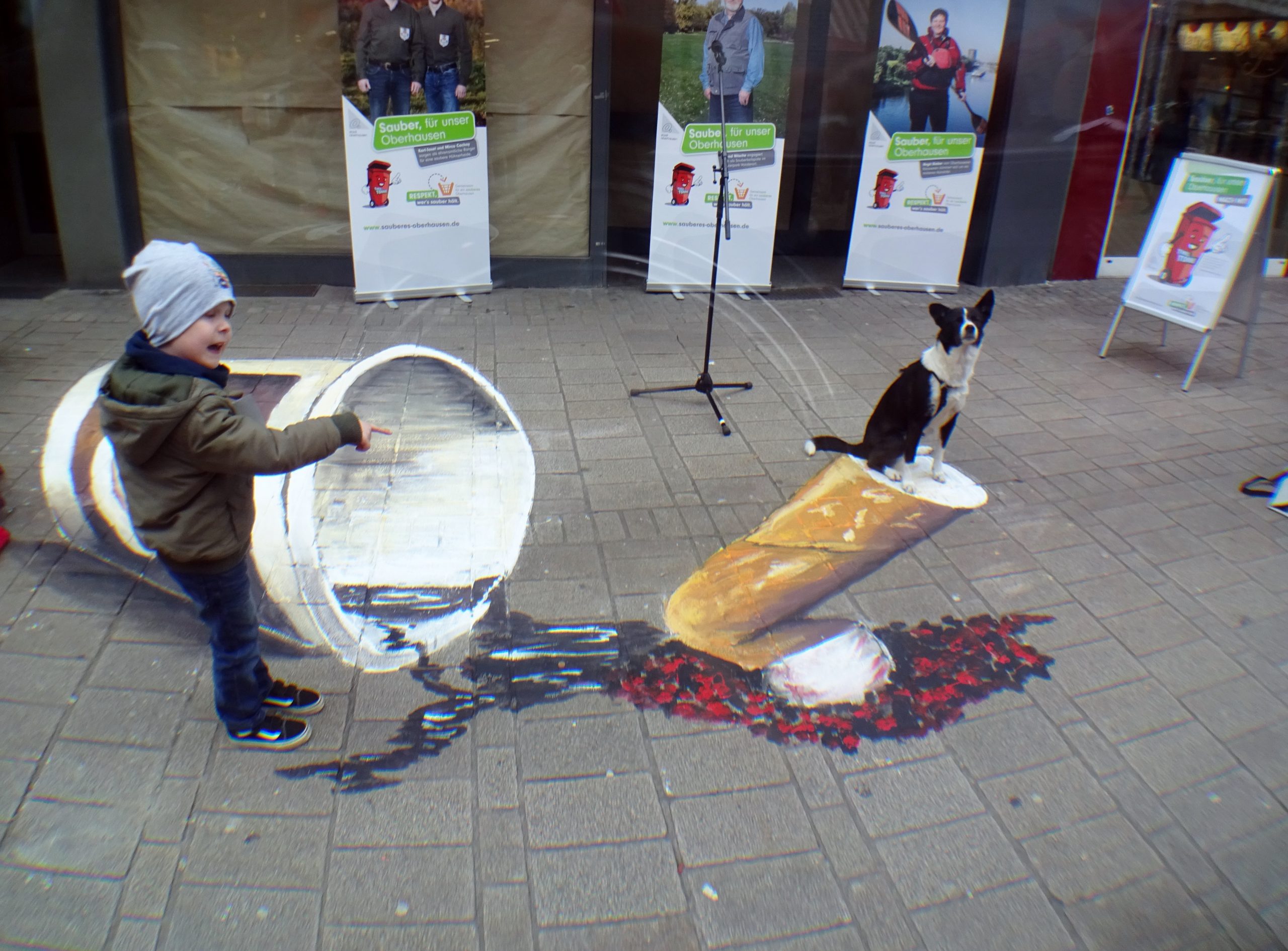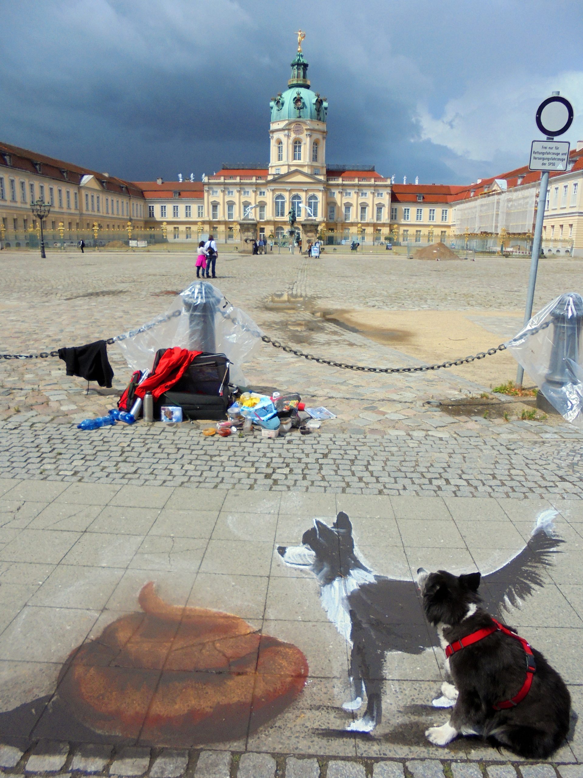 Es fing 2014 in Berlin an, als die berliner Stadtreinigung auf diese Idee kam. https://www.bsr.de/   Wir malten mit 4   Personen, gleichzeitig, ca 15 Einsätze – am unbeliebtesten war bei uns allen das Thema „Hundehaufen“. Es machte sich sehr gut, vor dem Schloß, oder dem Reichstag, oder gar der Gedächtniskirche, wo  gerade die Fußball Fans von  Werder Bremen und Bayern München auf einander trafen. Für uns Straßenmalern, ist es sehr ungewohnt, klein und „nicht schön“ zu malen. Man lebt doch von dem  positivem feedback des Publikums.