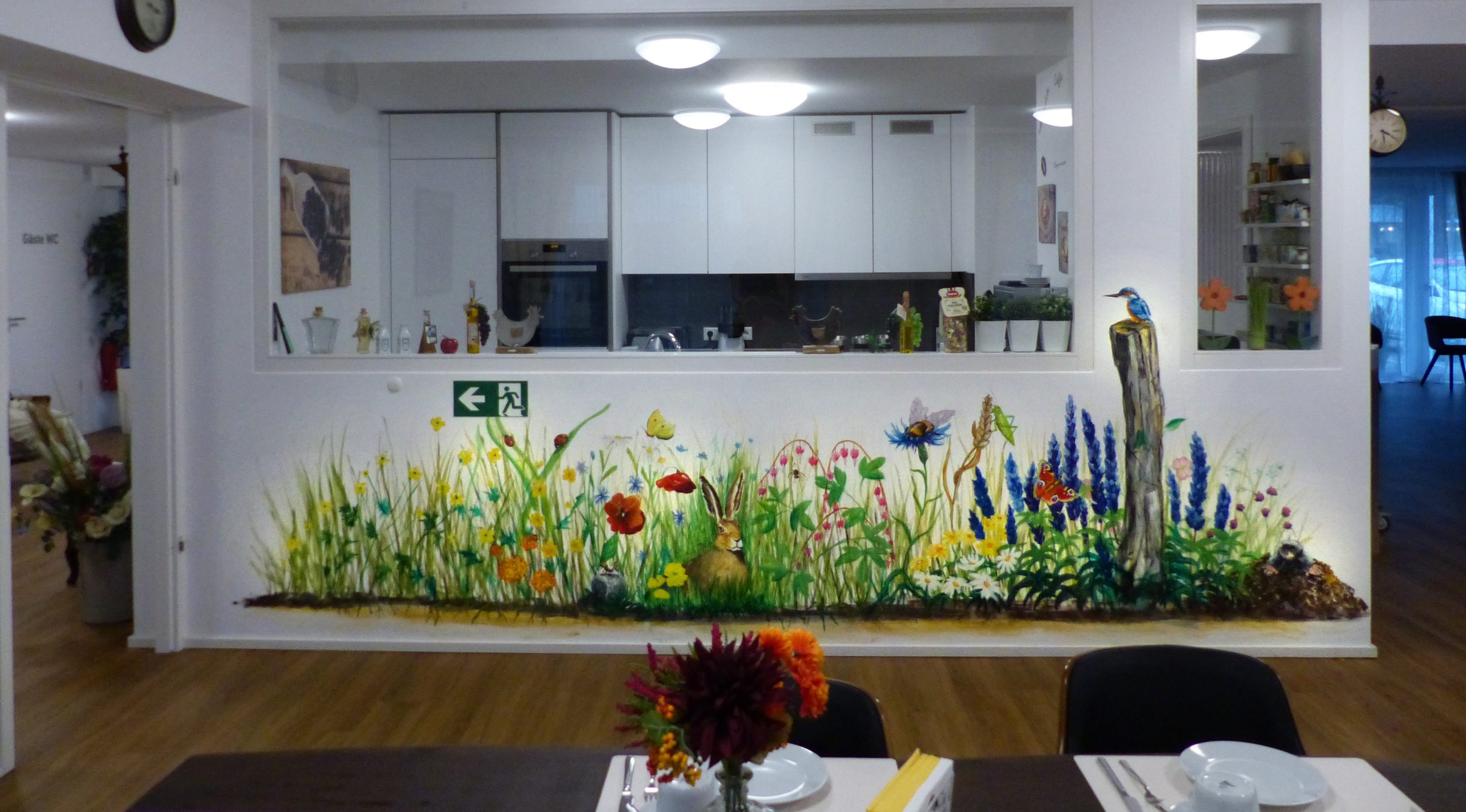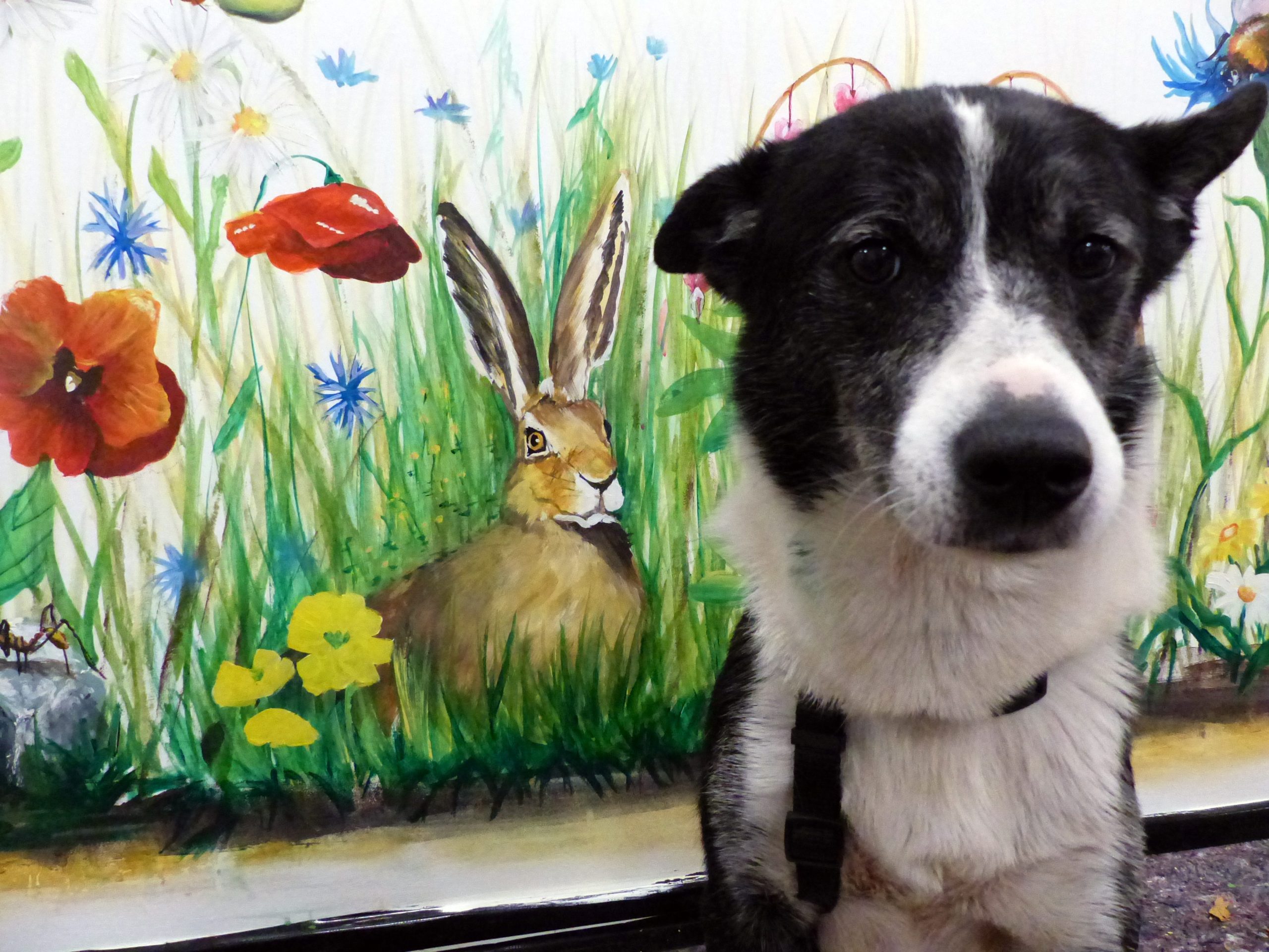 Dieses war auch ein schöner Einsatz, es diente der Gereontopsychatrie. Fachbereich in der Psychiatrie, das sich mit der Diagnostik, Behandlung und Prävention psychischer Erkrankungen bei älteren Erwachsenen beschäftigt. In dem Fall bei der Tagespflege in Moers https://rp-online.de/nrw/staedte/moers/moers-gemeinsam-statt-einsam-tagespflege-fuer-senioren_aid-63255829  das ist ein Ort,  an dem sich Senioren den Tag über aufhalten, wenn sie zum Beispiel alleine wohnen möchten, aber sich einsam fühlen, oder die Angehörigen schaffen nicht die ganz tägige Pflege. Ich kann nur sagen, wenn es jemals sein muß, würde ich selbst gerne bei Victoria Seibert in der Tagespflege sein. Ein unglaublich aufmerksames, liebevolles Team. Und  ich mit meiner Malerei war natürlich eine große Unterhaltung , für die Besucher, und dann noch mit Hund.  Solche Abwechslung, plus zum Beispiel Erinnerungs Impulse setzen, mit dem Blumen Bild, dienen zum Beispiel der Vorbeugung von Demenz