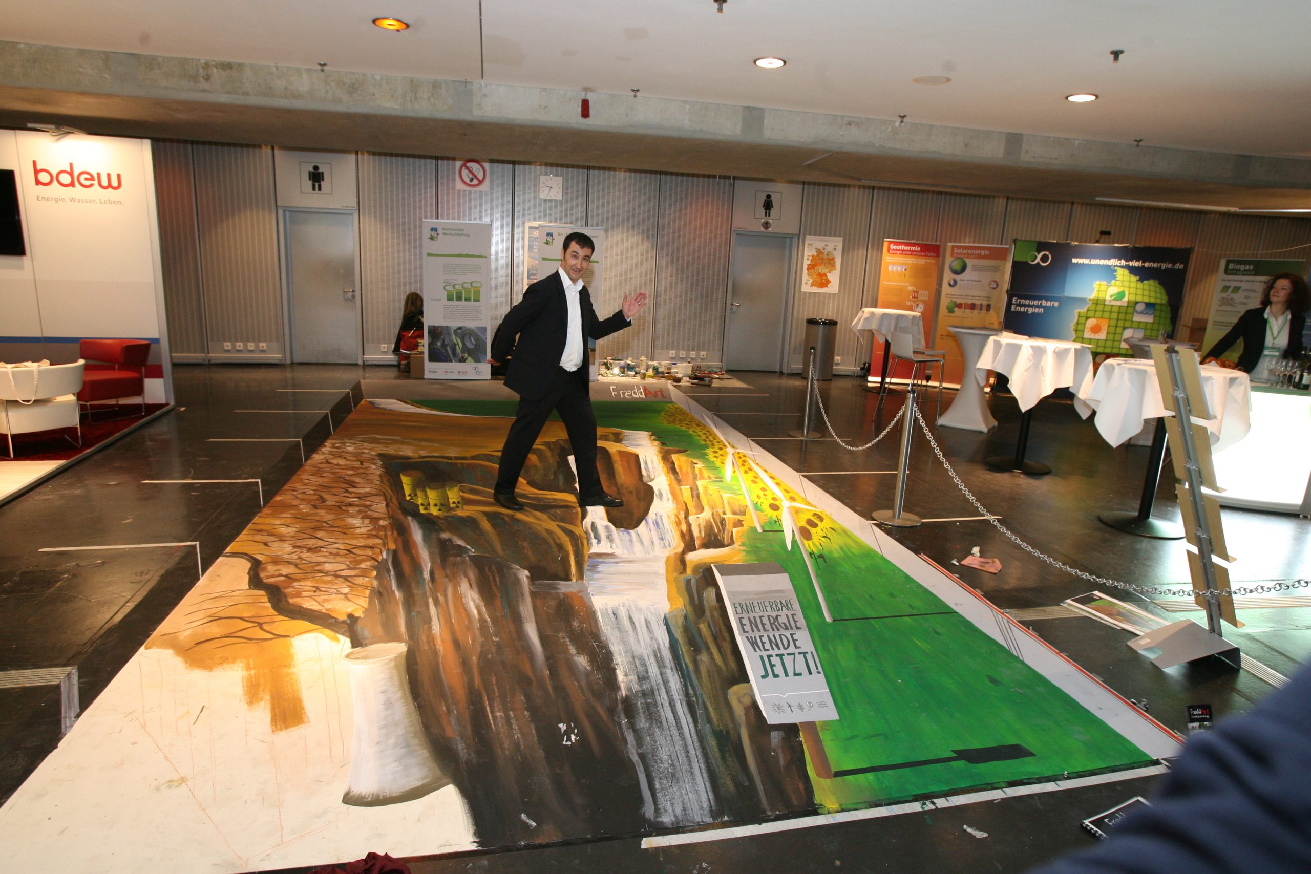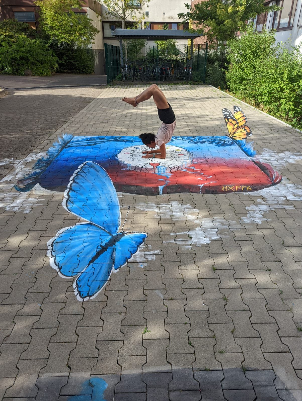 Fast jedes Jahr male ich für die Kindernothilfe Duisburg. Anfangs „normale“ Kinderworkshops, jetzt eher drei dimensionale Bilder, mit der Möglichkeit, daß die Kinder/Jugendlichen/Schüler mir helfen können.