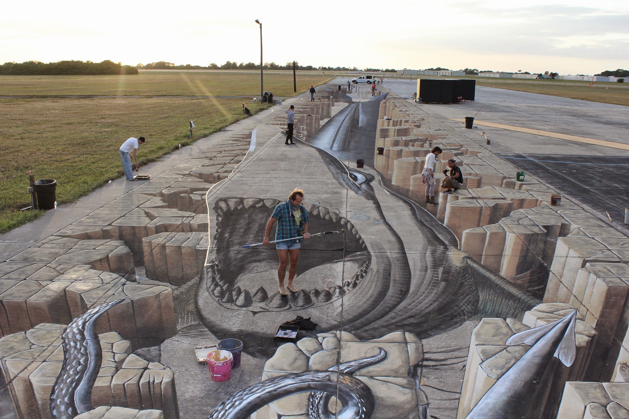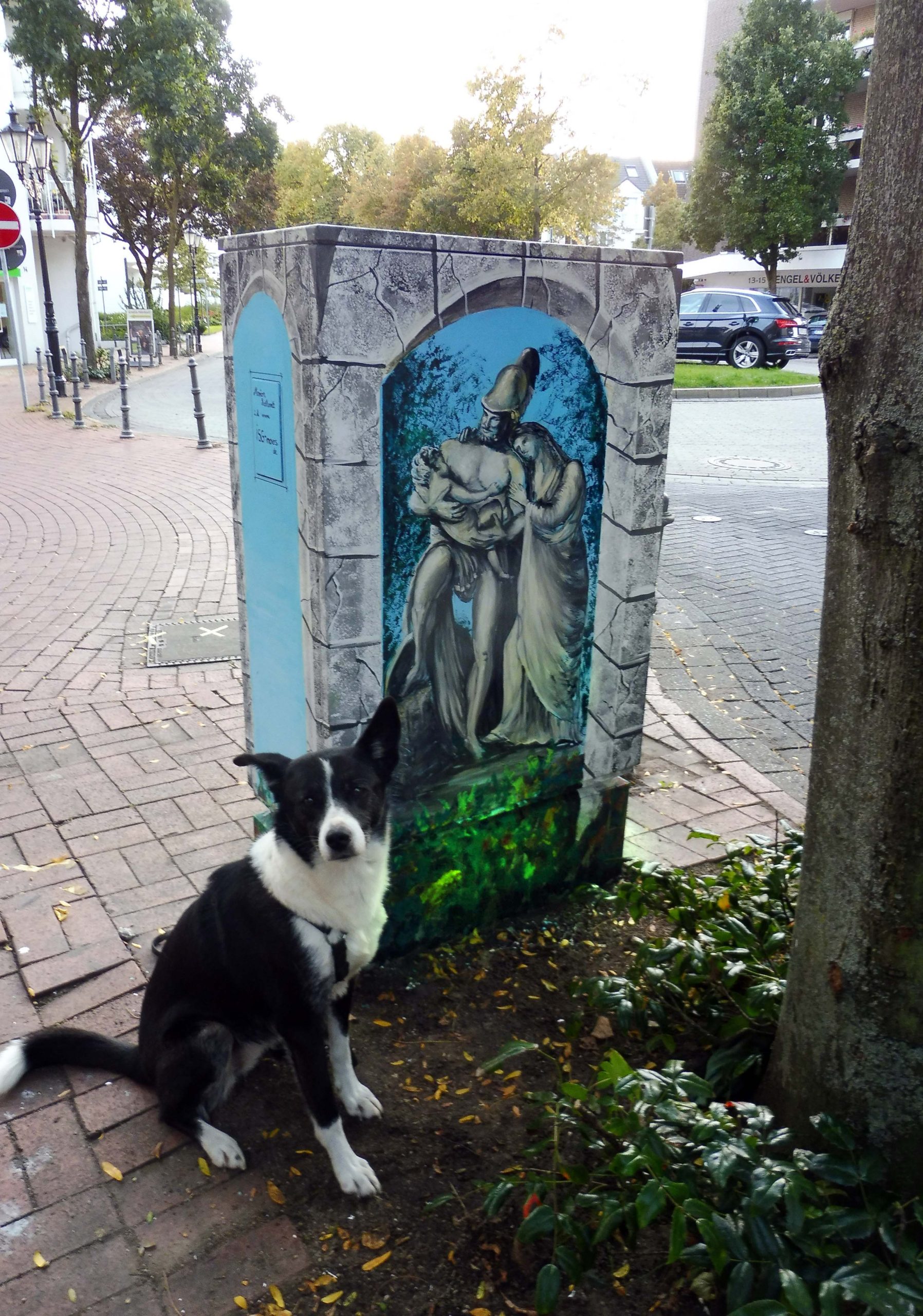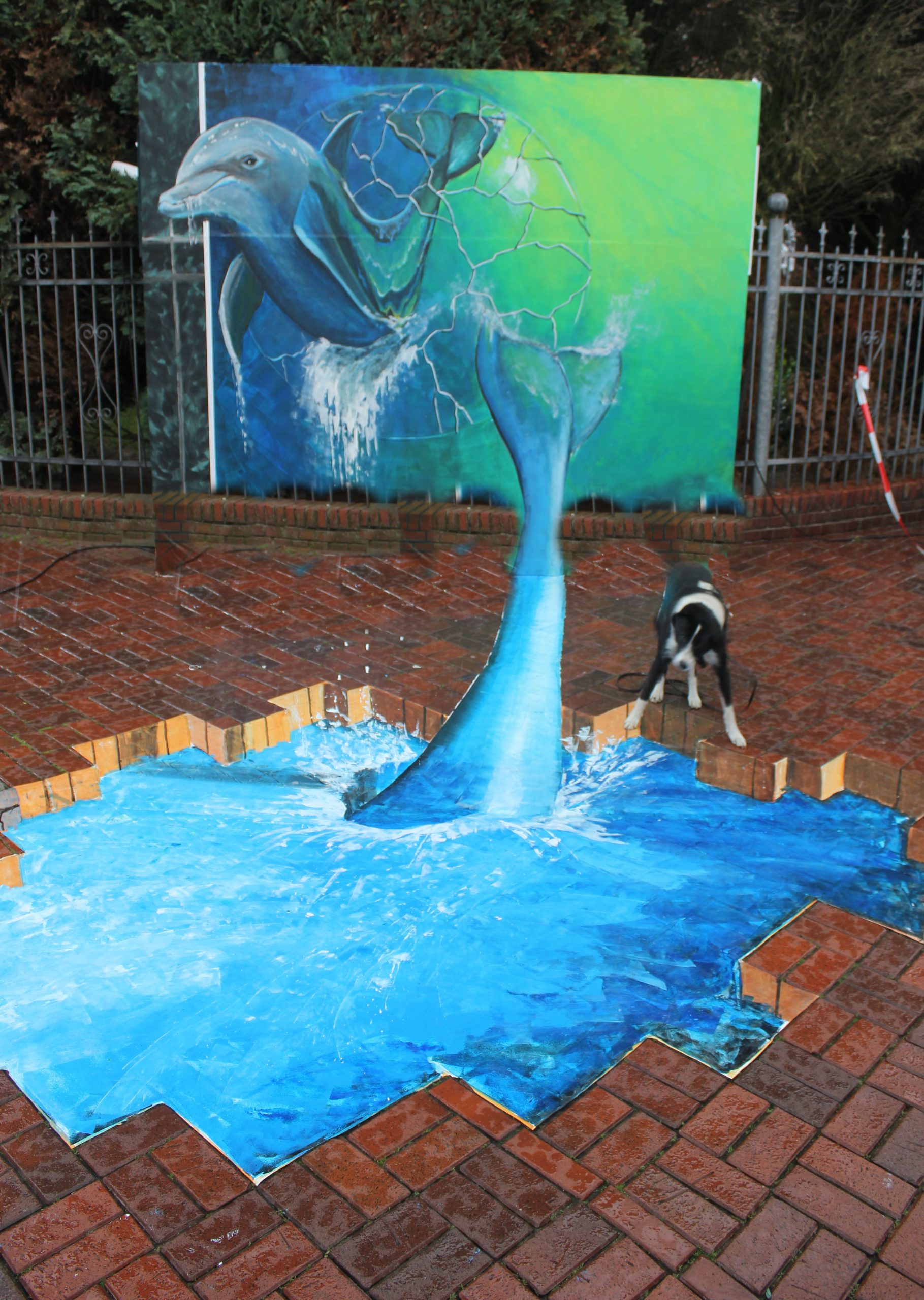 Was ich natürlich auch gerne mache, ist Wand + Boden. Das ist dann an der Wand Illusionsmalerei, und am Boden Anamorphose. Leider bekomme ich nicht so oft die Gelegenheit dazu. Danke in dem Fall dem Grevener Stadtmarketing, welches alljährlich durch die fleißge Initiative von Ewa Grzybek Gewa jedes Jahr „Greven malt bunt“ auf die Beine stellt.https://www.greven.net/veranstaltungskalender/veranstaltungen/Maifest.php